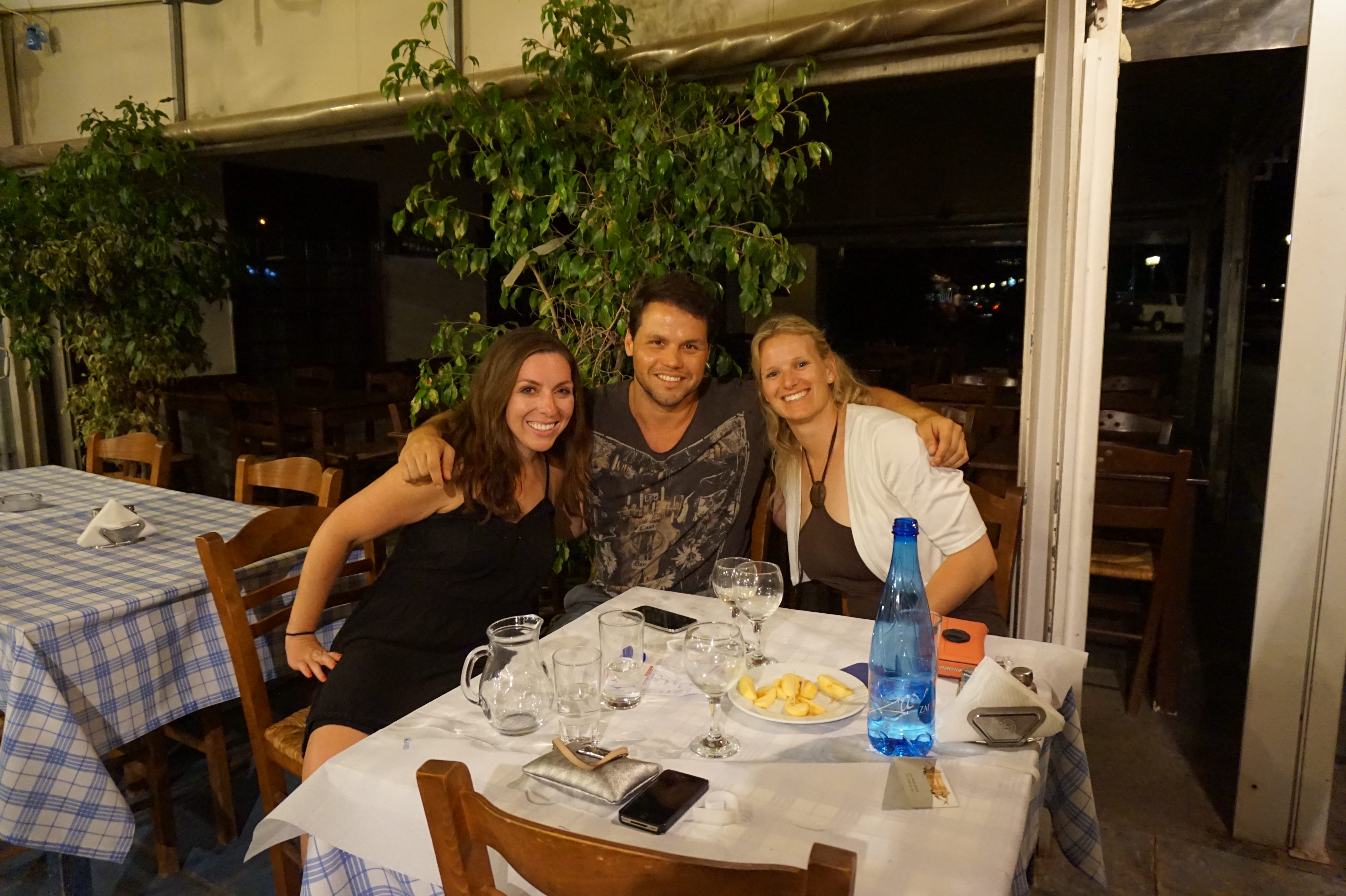 Alli wanted a more “authentic” travel experience in Greece. Whereas I would’ve probably rented a room at a hoity-toity resort, Alli wanted to engage and interact with Greek people and understand their culture. I’m glad she desired this, because it led to us meeting some amazing people. We used Airbnb and rented a cute studio in Ornos that overlooked the water. The owner of the studio’s father, Mimis, picked us up from the airport as the owner was in Athens to vote in the Greek election. Mimis was wrinkled, yet tanned, and spoke no English whatsoever. At the airport, he held up a sign reading “Jessop,” so we approached him, got into his car and then proceeded to say nothing at all to each other. Later, I’d remark to Alli that we sure were being ultra trusting of complete strangers. She brushed it off.