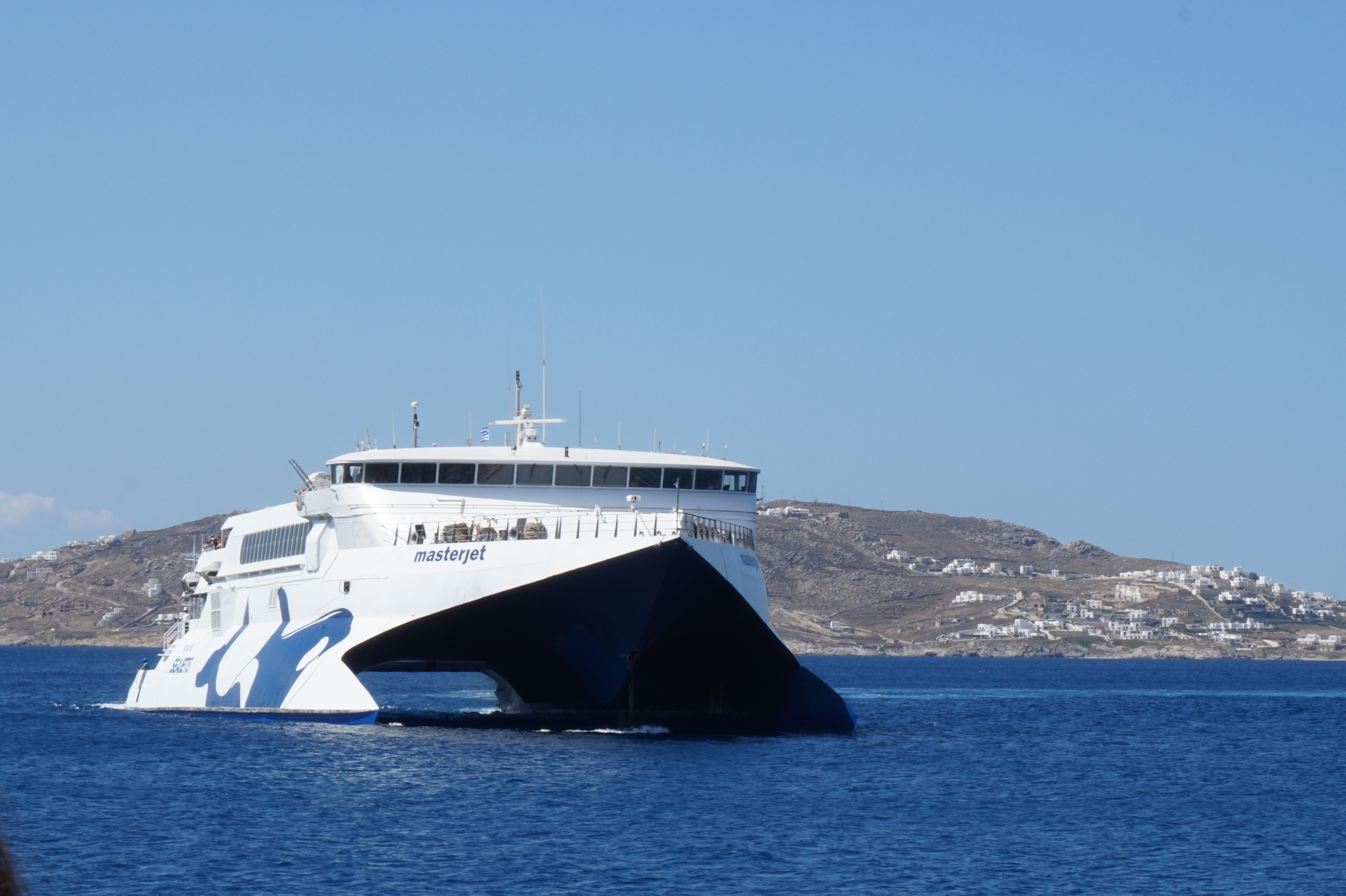 After three nights in Mykonos, we were off via a ferry to Santorini. I read a lot about the ferries in Greece being unreliable, and as luck would have it, we had a chance to experience this for ourselves. Mimis dropped us off at the port about 30 minutes ahead of our scheduled ferry departure time. I’m not a morning person, so this was already too early for me. There was nobody at the ticket counter, and only other tourists swarming about wondering if they were in the right spot. We waited and waited and over an hour after our ferry was scheduled to leave, a big boat rolled in. We entered and I immediately did whatever I do when I travel via common carrier: Fell asleep. Some four hours later, we arrived in Santorini.