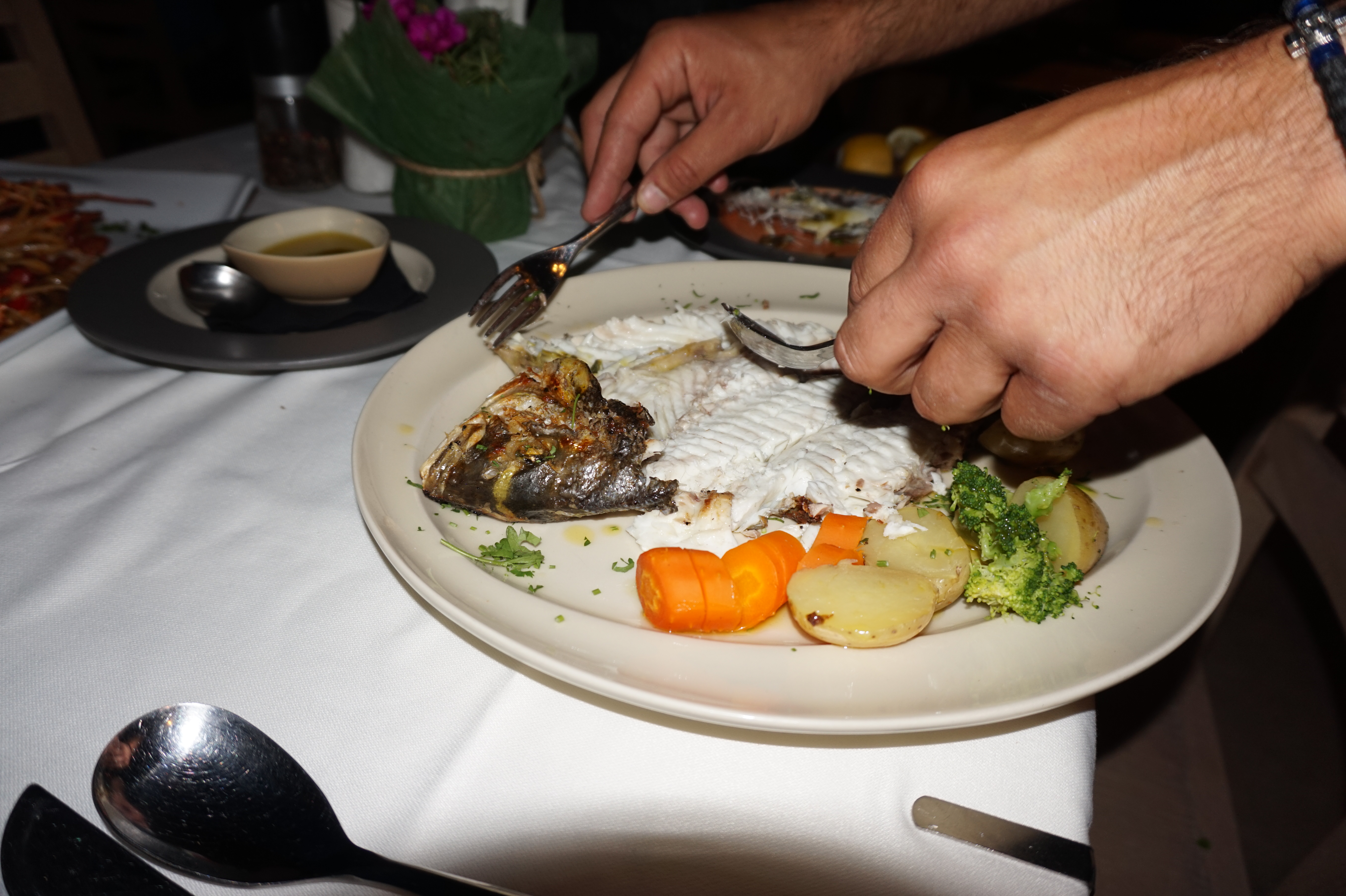 When our meals were cooked, we were greeted with one of the most beautifully presented meals I’ve ever seen. Two waiters approached our table and proceeded to take my lobster out of its shell and prepare Alli’s fish. It was an amazing experience.