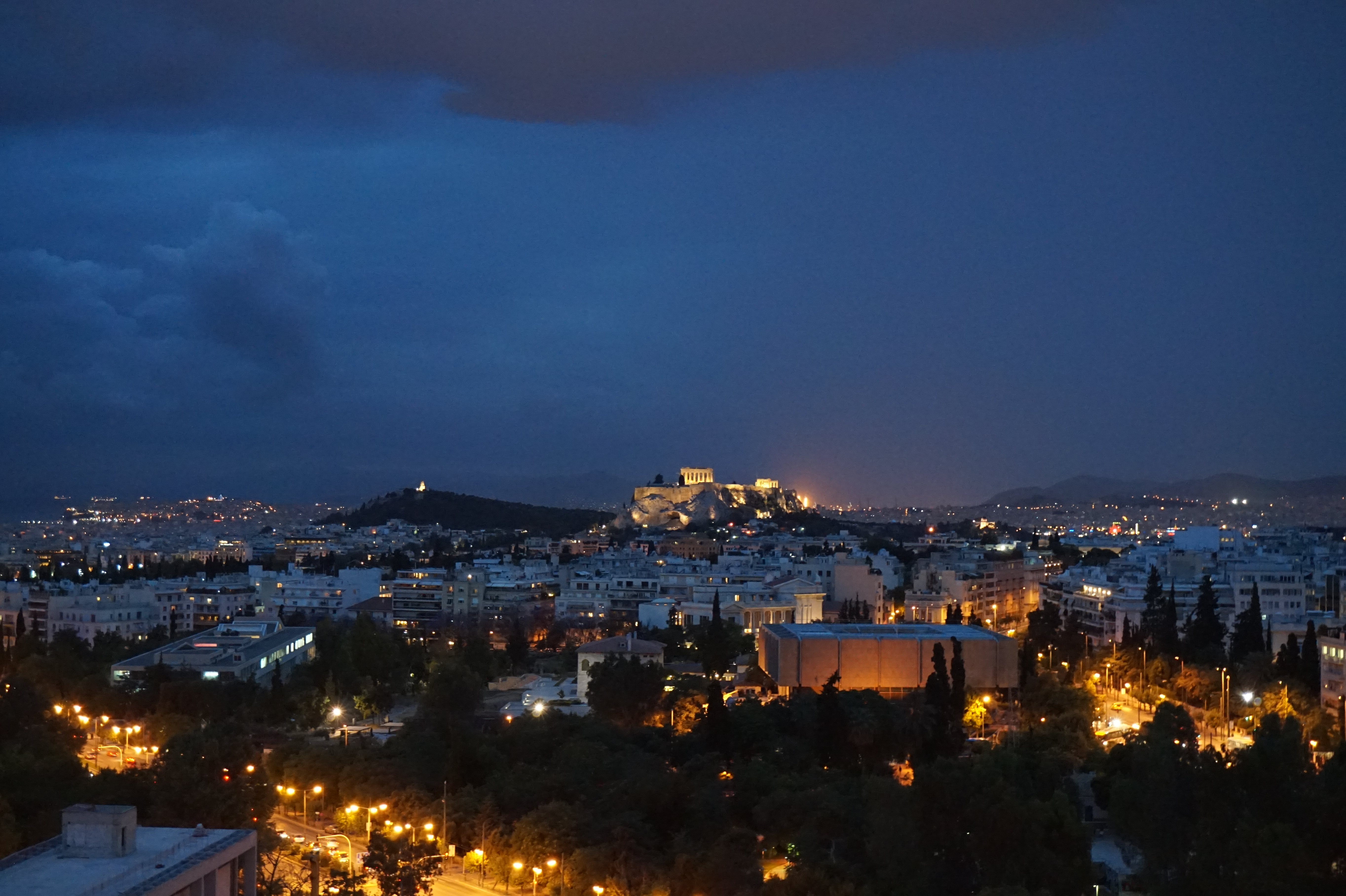 With firsthand knowledge of the inconsistency of Greek ferries, we were happy that we opted to fly from Santorini to Athens for the last night of our trip. By this point of the trip, I was having Starbucks withdrawals (I went without for 12 days, which is HUGE for anyone who has spent more than 18 hours with me). I was also missing the convenience of being able to flush toilet paper down the toilet and not having to turn on the water heater 10 minutes before you wanted to take a shower. As such, I was THRILLED that we booked a Hilton for our last night in Greece. The Hilton in Athens was absolutely amazing. Along with having plush beds and readily warm showers, it had one of the most perfect views of the Acropolis. I saw amazing pictures of the Acropolis lit up at night, and luckily, the view of it from the Hilton didn’t disappoint. Alli and I sat on the terrace and drank champagne as we watched the sun go down, but the Acropolis light up. It was something I’ll never forget. We sat there largely quiet, both of us reflecting on the journey we had just been on.