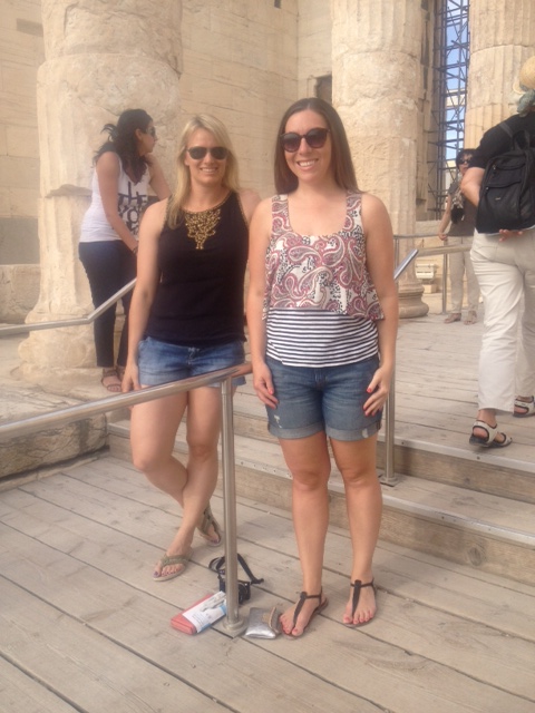 My favorite one is probably the one right below, where Alli and I look so stoic. What this picture doesn’t show, is how right before it was snapped we were attempting to take a funny picture, where we were holding our hands up like columns. However, an Acropolis guard was less than amused and yelled at us that we can “only take normal pictures!” Buzzkill. Yet, we obliged. And now have one very awesome, normal picture of us at the Acropolis. I look scared.