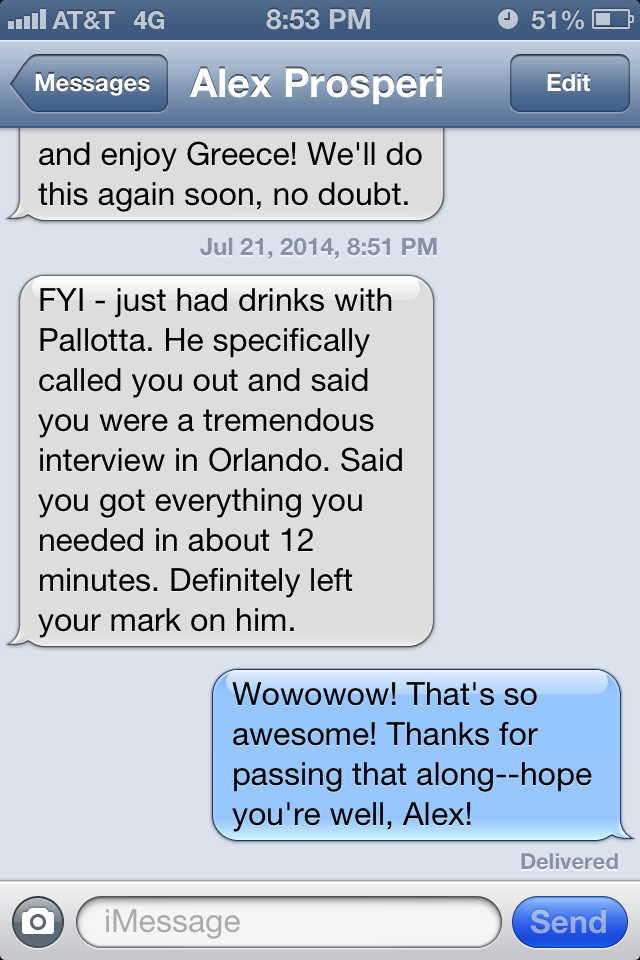 Today I got this text message from Pallotta’s publicist. It blew me away.
