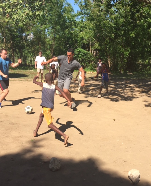 We met them on the dirt field underneath the tree.  In our shoes and pressed clothes, we turned a jump rope for some.  We joined a soccer game whose goals were marked by rocks and whose players largely went without shoes.  And we were merciless against them in soccer, as David, an NFL player, may have scored at least four goals on my count against them.