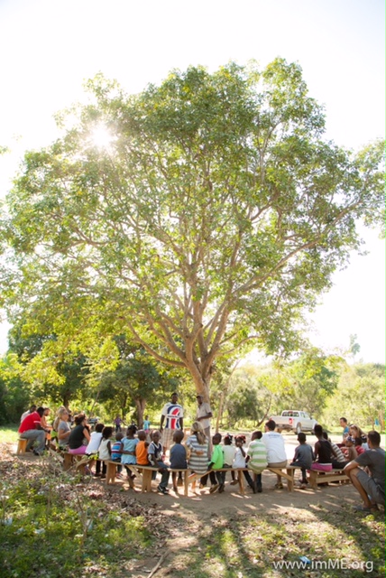 About an hour into our time under the beautiful tree, two men appeared.  They had with them long, wooden benches.  I watched from the side as they set them up under the tree.  Once all of the benches were set up, I noticed that the children wound up their games and began making their way to sit on the benches underneath the beautiful tree.